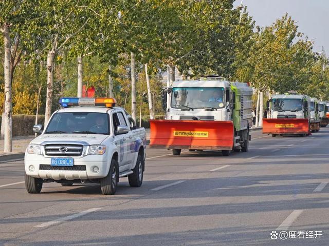 在濱河南路演練現(xiàn)場(chǎng),鏟雪車(chē)、滾刷車(chē)、撒布機(jī)、吹雪機(jī)、裝載機(jī)和翻斗車(chē)等“除雪重器”一字排開(kāi),氣勢(shì)壯觀,隨著指揮員一聲令下,除雪演練正式開(kāi)始。參演人員通過(guò)“機(jī)械操作+人工配合”的方式,按照“先打開(kāi)一條車(chē)道,再向兩邊擴(kuò)展”“先機(jī)動(dòng)車(chē)道、后非機(jī)動(dòng)車(chē)道”的順序,科學(xué)調(diào)配除雪車(chē)輛進(jìn)行梯隊(duì)組合作業(yè),整個(gè)演練過(guò)程分工明確、反應(yīng)迅速、配合默契、有條不紊,檢驗(yàn)了全體人員應(yīng)對(duì)突發(fā)雪情的反應(yīng)速度、快速處置和組織調(diào)度能力。