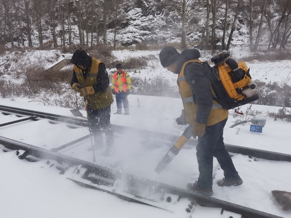 人民網(wǎng)哈爾濱11月6日電 (尚城)11月6日,黑龍江省迎來暴雪、雨雪冰凍、大風(fēng)天氣,此次過程影響范圍廣、降雪量大,局地降水量可能接近或突破歷史同期極值。中國鐵路哈爾濱局集團(tuán)有限公司第一時(shí)間對(duì)受降雪影響主要鐵路區(qū)段啟動(dòng)預(yù)警,調(diào)集大功率風(fēng)力除雪機(jī)、重型軌道車、除雪車輛、熱滑除冰列車等設(shè)備參與除雪工作。為確保旅客列車和人民群眾出行絕對(duì)安全,哈鐵有序開展行車調(diào)度、清冰除雪、設(shè)備巡檢、旅客疏導(dǎo)、安全防護(hù)等應(yīng)急處置工作,根據(jù)雪情科學(xué)調(diào)整運(yùn)輸方案,盡最大努力減少惡劣天氣對(duì)運(yùn)輸秩序的影響。